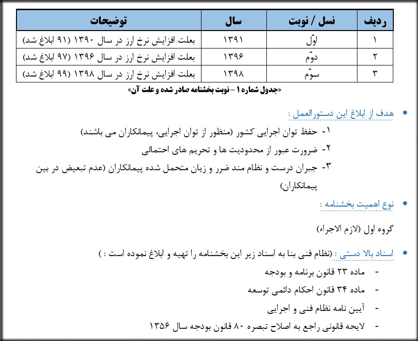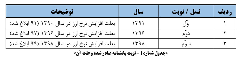 تعداد نوبت بخشنامه صادر شده وعلت آن به شرح مندرج در جدول زیر می باشد :