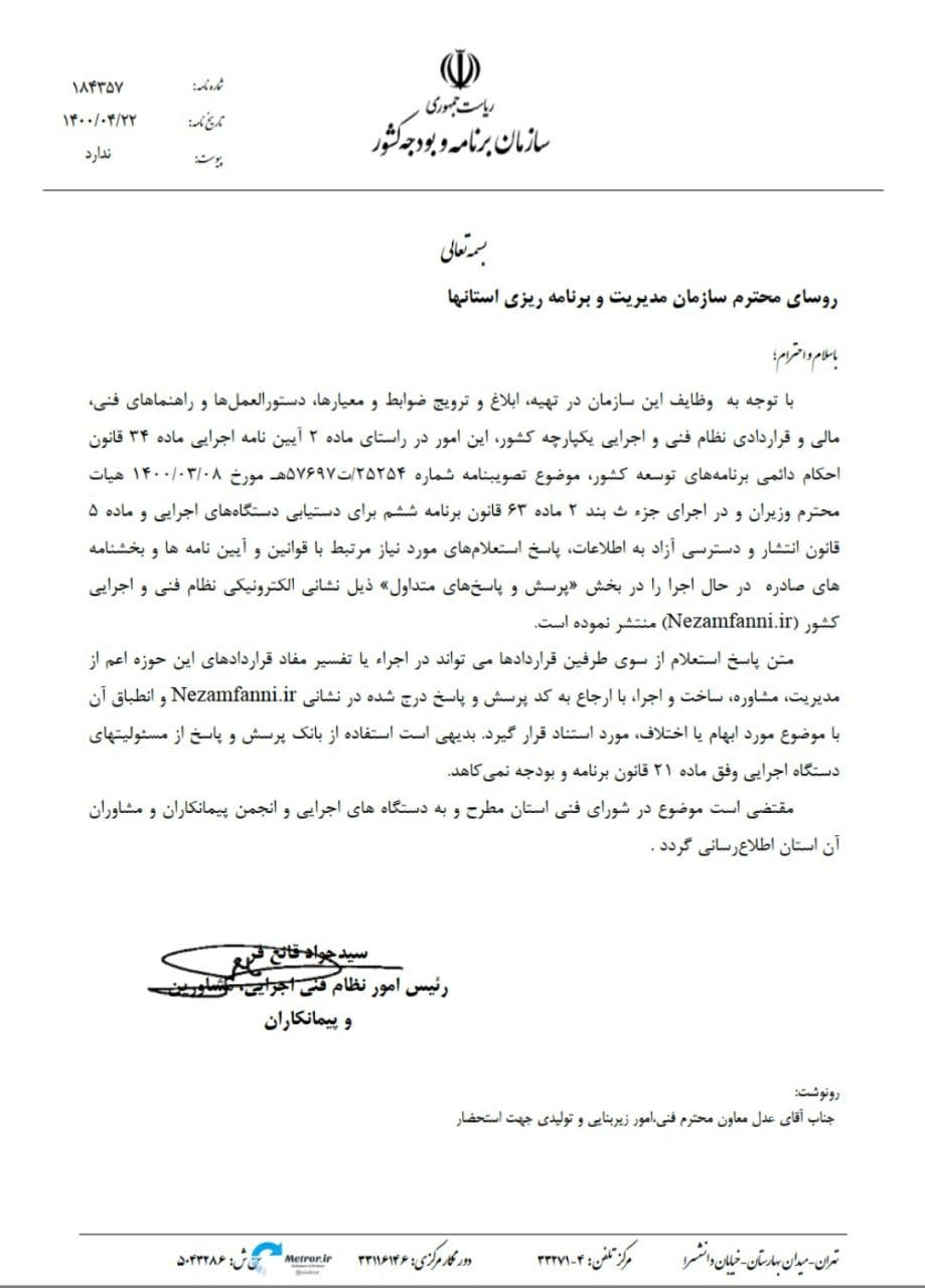 قابل استناد بودن "پرسش و پاسخ های متداول" ذیل نشانی الکترونیکی نظام فنی و اجرایی کشور