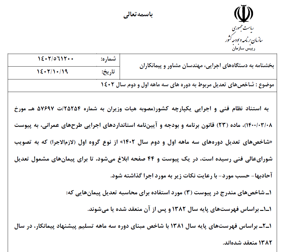 + نوشته شده در جمعه بیست و دوم دی ۱۴۰۲ ساعت 12:5 توسط Arash Contracts Management