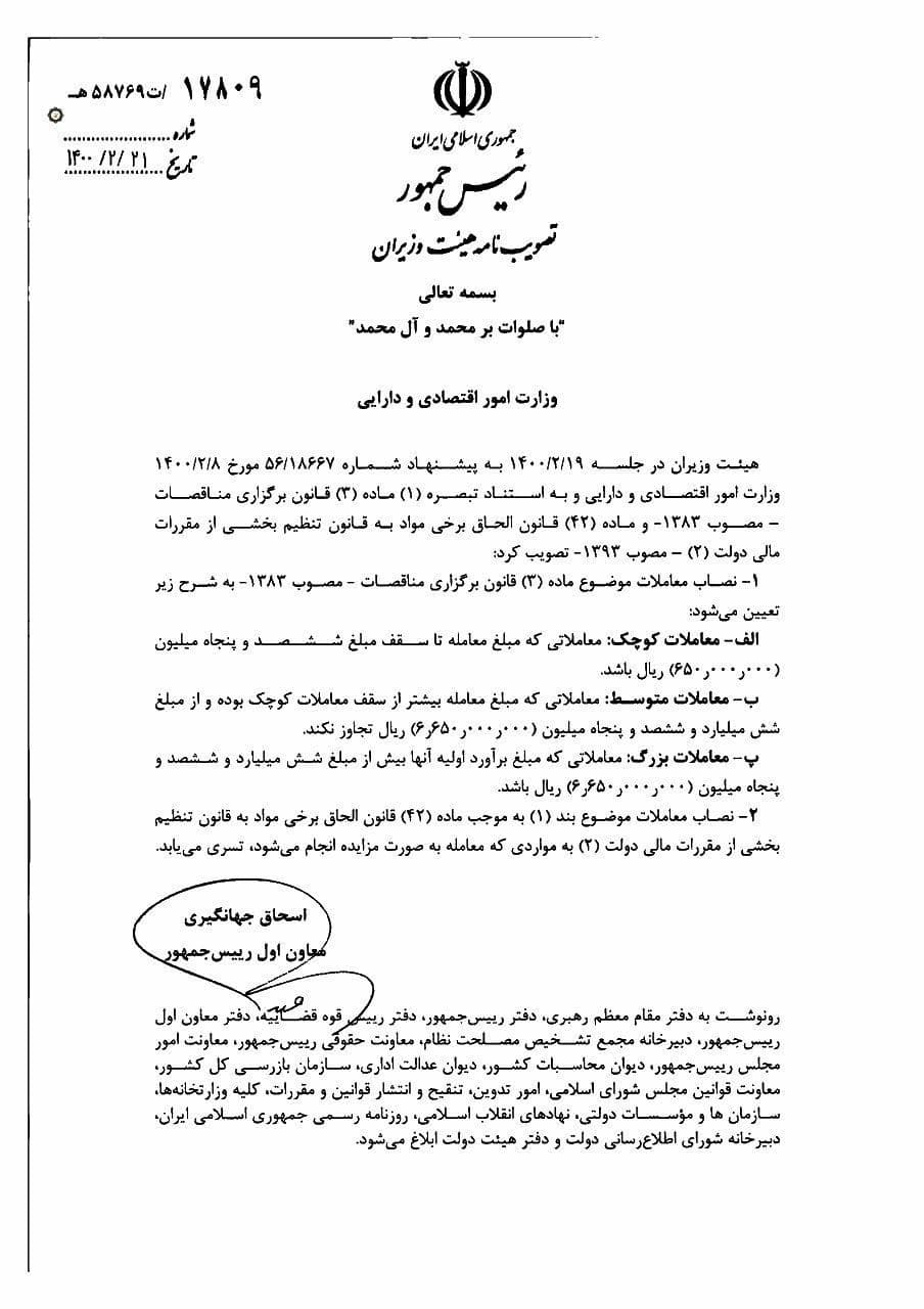 حد نصاب معاملات در سال 1400