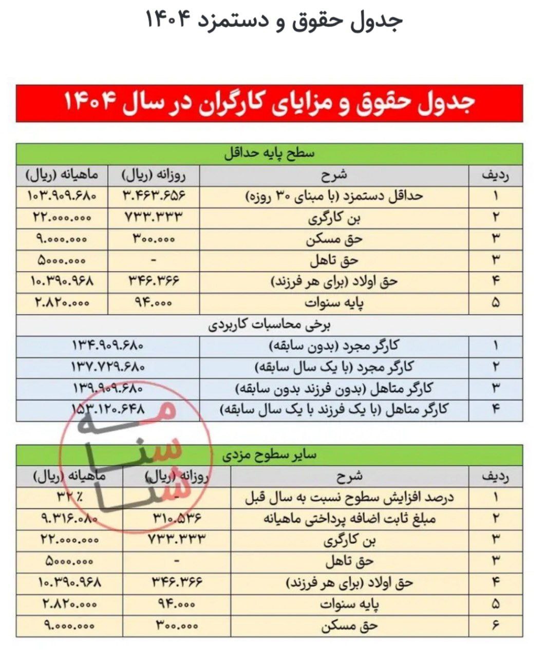 ❇️ جزئیات افزایش ۴۵ درصدی دستمزد کارگران در سال ۱۴۰۴: