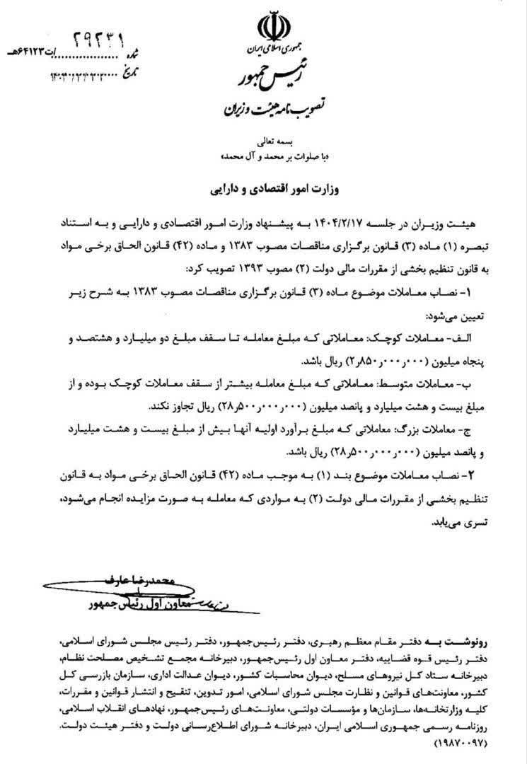 حد نصاب معاملات سال ۱۴۰۴ از سوی هیئت وزیران تصویب شد
