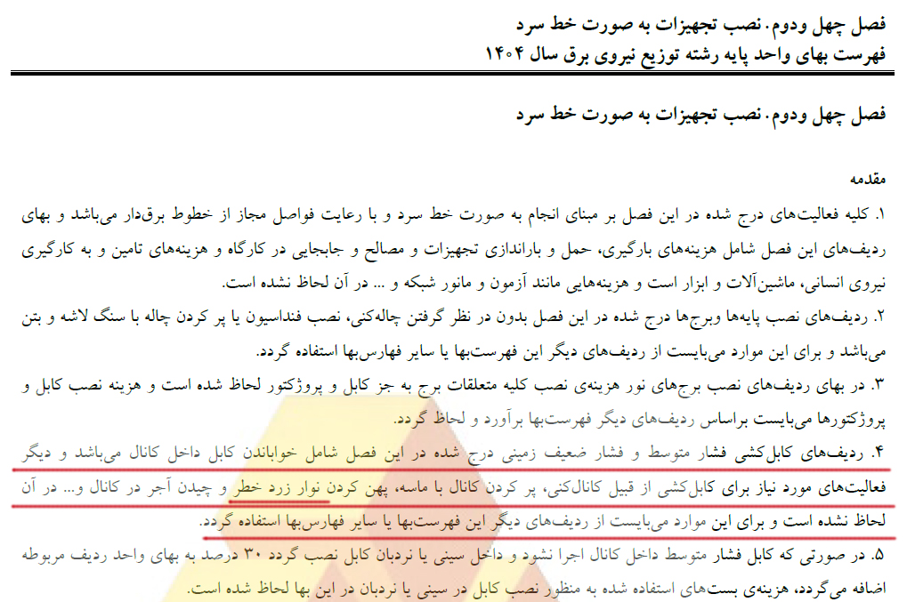 دانلود فهرست بها پایه رشته توزیع نیروی برق سال 1404