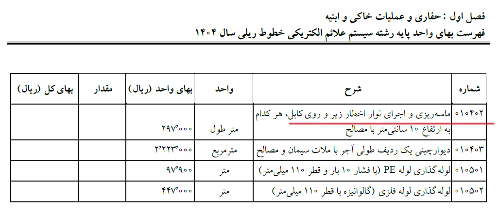 دانلود فهرست بهاء پایه رشته سیستم علائم الکتریکی خطوط ریلی 1404