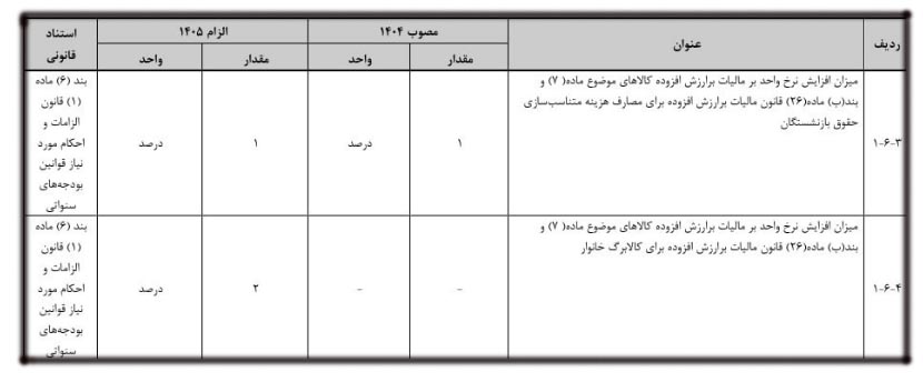 جزئیات بودجه 1405| افزایش نرخ مالیات ارزش افزوده به 12 درصد